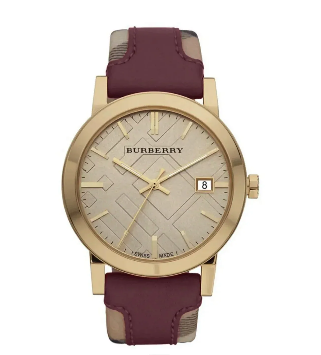 Burberry BU9017 – Beżowa Tarcza i Pomarańczowy Skórzany Pasek – Dla Kobiety Odwagi