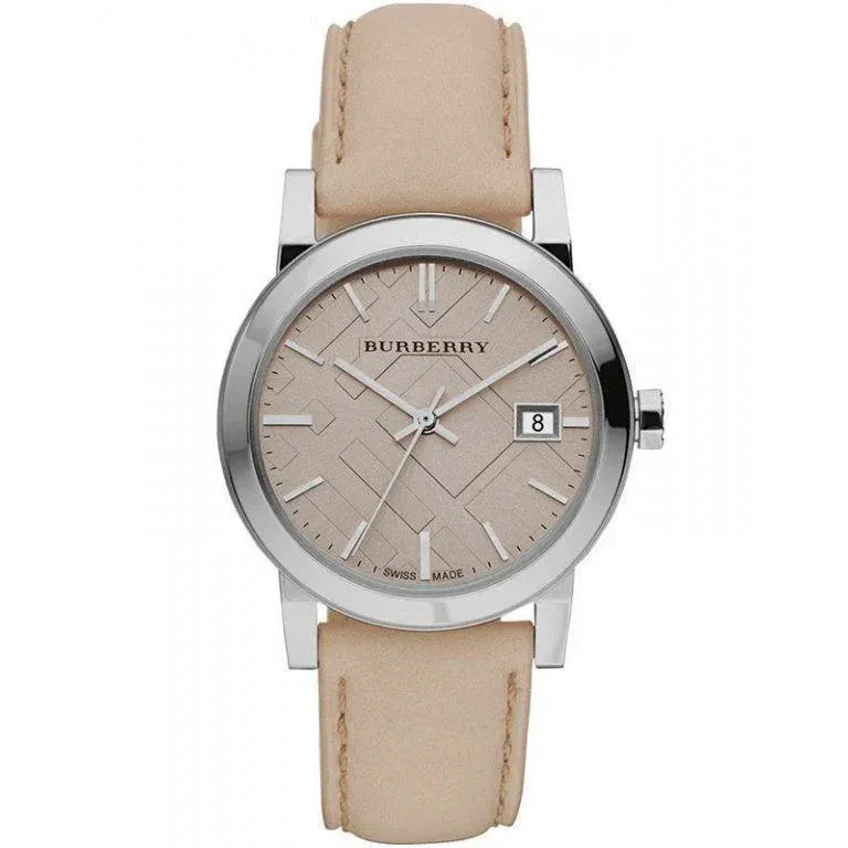 Burberry BU9107 The City – Bezowa Tarcza i Bezowy Skórzany Pasek – Dla Kobiety Która Wie, Że Ciepło Zawsze Wygrywa