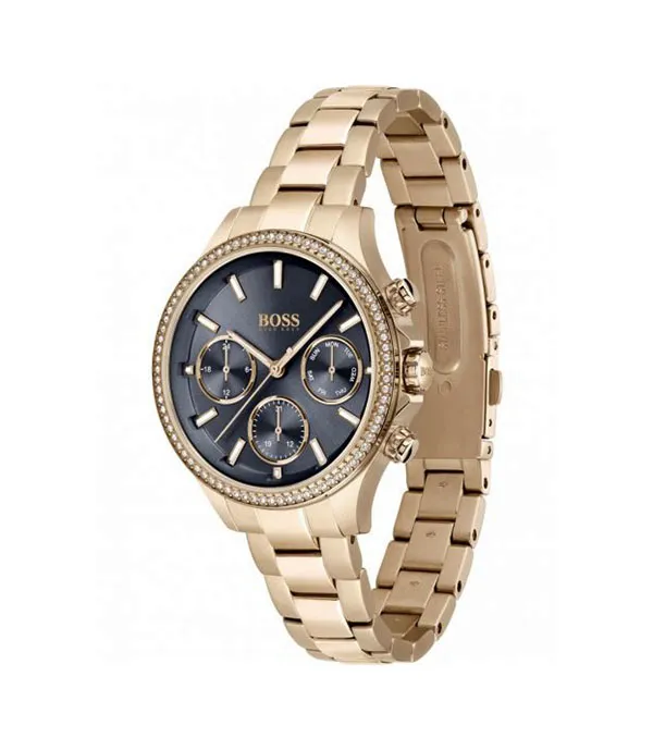 Zegarek pracuje na mechanizmie kwarcowym i został wyposażony w szkło mineralne oraz wodoszczelność 3 ATM. Koperta 38 mm sprawia, że model jest wyraźnie widoczny na nadgarstku, a stalowa bransoleta podkreśla jego biżuteryjne wykończenie. Hugo Boss 1502566 będzie dobrym wyborem, jeśli szukasz damskiego zegarka Hugo Boss na bransolecie, w kolorze różowego złota, z granatową tarczą i eleganckim charakterem.