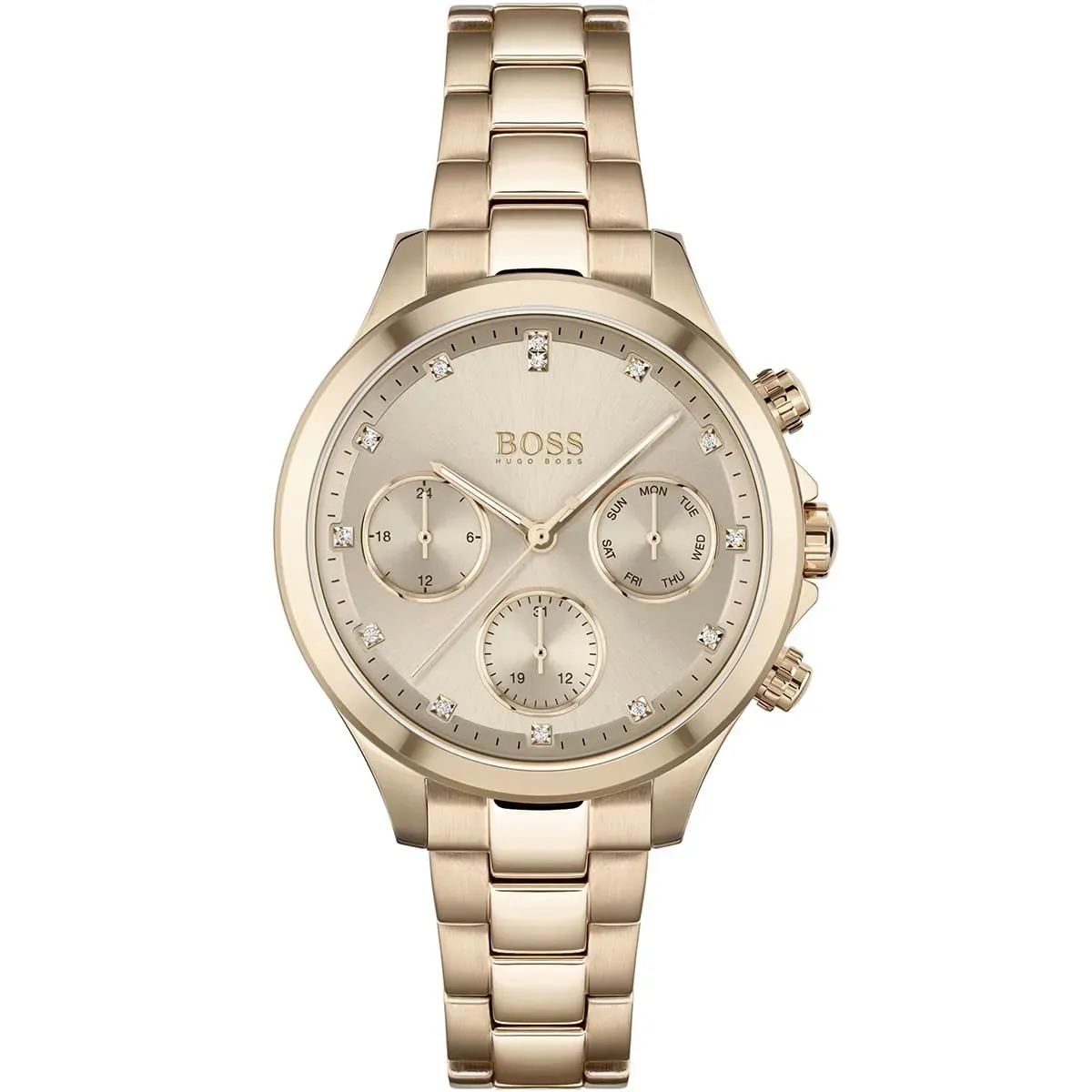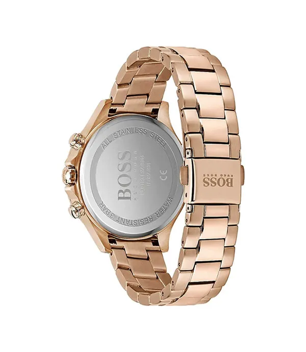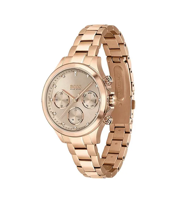 Model pracuje na mechanizmie kwarcowym i został wyposażony w szkło mineralne oraz wodoszczelność 3 ATM. Wielofunkcyjna tarcza zwiększa praktyczność na co dzień, a stalowa bransoleta podkreśla bardziej dopracowany charakter modelu. Hugo Boss 1502592 będzie dobrym wyborem, jeśli szukasz damskiego zegarka Hugo Boss na bransolecie, w kolorze różowego złota, z większą kopertą i eleganckim wykończeniem.