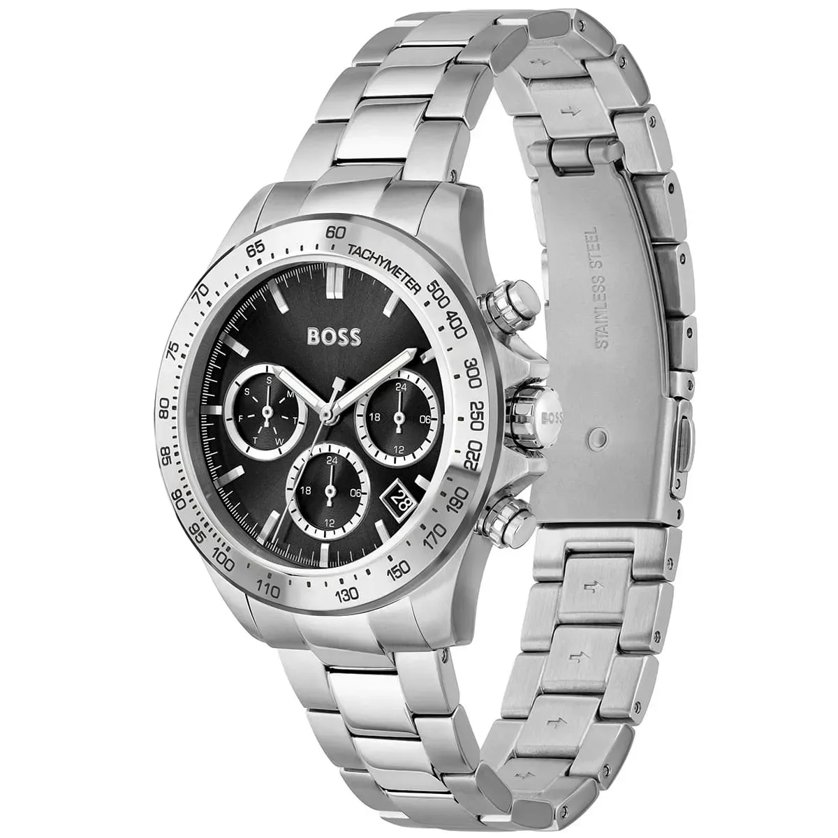 Model został wyposażony w mechanizm kwarcowy, szkło mineralne i wodoszczelność 5 ATM. Wielofunkcyjna tarcza zwiększa użyteczność na co dzień, a stalowa bransoleta podkreśla jego sportowo-elegancki wygląd. Hugo Boss 1502614 będzie trafnym wyborem, jeśli szukasz damskiego zegarka Hugo Boss na bransolecie, w rozmiarze 38 mm, z czarną tarczą i bardziej nowoczesnym charakterem.