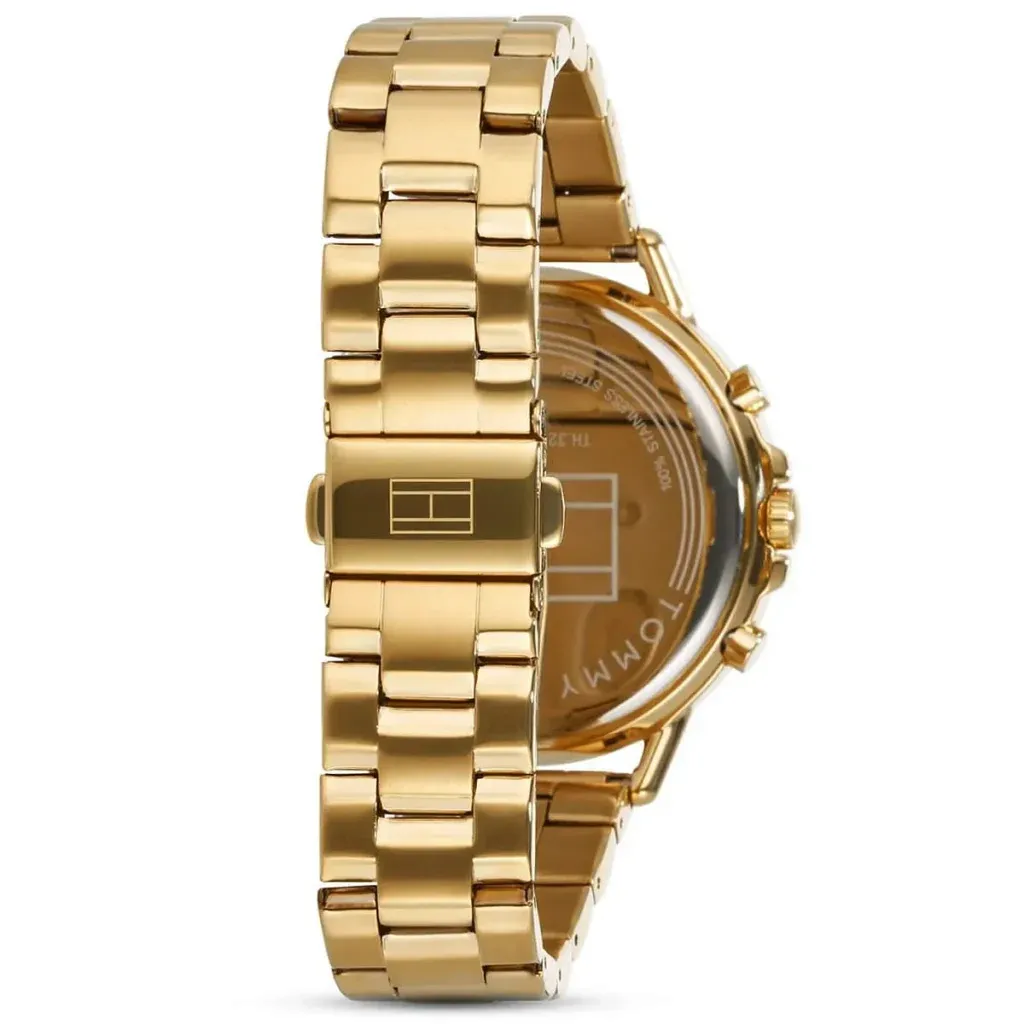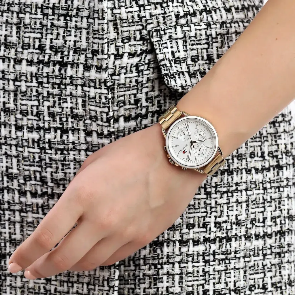 Zegarek wyposażono w mechanizm kwarcowy, szkło mineralne oraz wodoszczelność 3 ATM. Na tarczy znajdują się wskazania dnia miesiąca, dnia tygodnia i czasu 24-godzinnego, co zwiększa praktyczność bez rezygnacji z modowego charakteru. To dobra propozycja dla osób, które szukają damskiego zegarka Tommy Hilfiger na bransolecie, w złotym odcieniu i z większą kopertą.