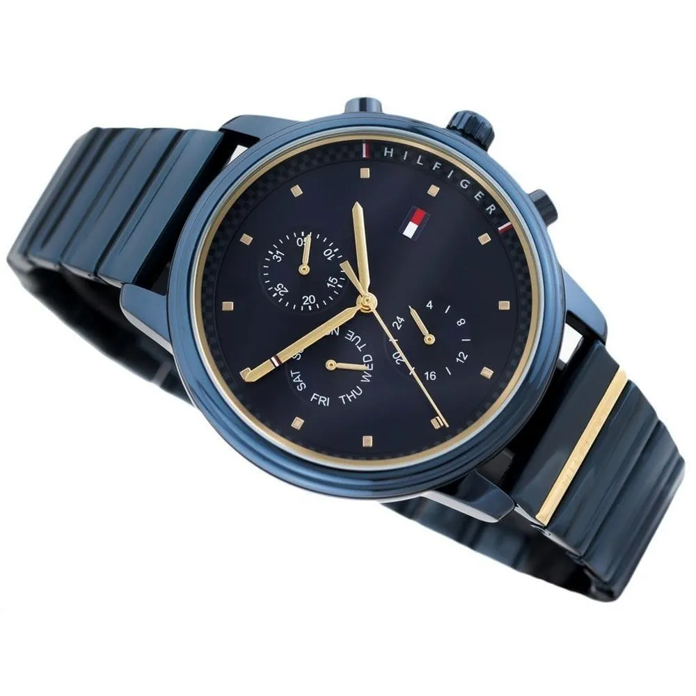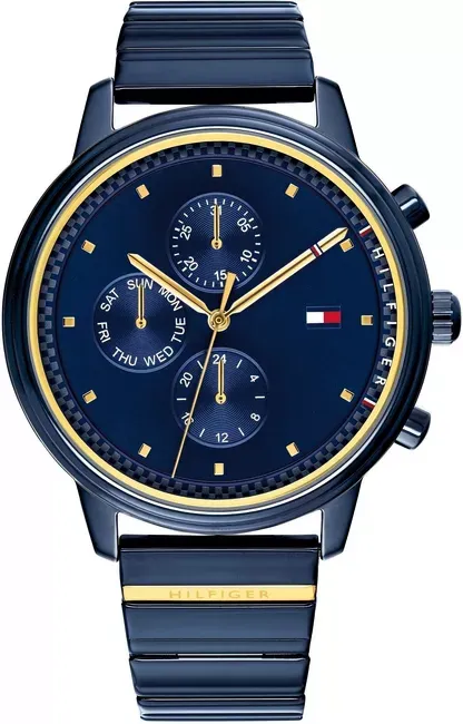 Zegarek został wyposażony w mechanizm kwarcowy, szkło mineralne oraz wodoszczelność 3 ATM, dzięki czemu sprawdzi się w standardowym użytkowaniu. Dodatkowe sub-tarcze z datownikiem, dniem tygodnia i wskazaniem 24-godzinnym zwiększają funkcjonalność bez rezygnacji z estetyki. To propozycja dla osób, które szukają damskiego zegarka na bransolecie, w granatowym kolorze, z charakterystycznym wzornictwem Tommy Hilfiger.
