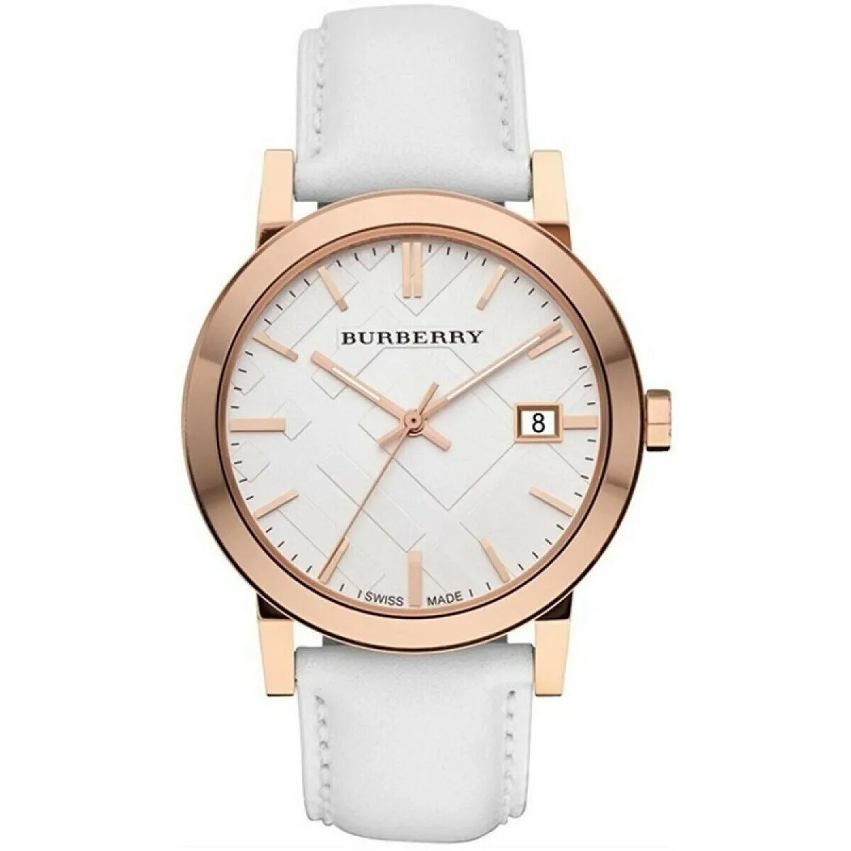 Burberry BU9012 – Biała Tarcza i Rose Gold Koperta – Dla Mężczyzny Który Wierzy W Harmoniię Między Tradycją a Odwagą