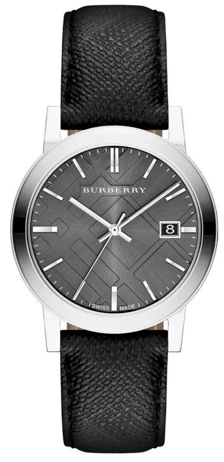 Burberry BU9030 – Szara Check Tarcza i Czarny Polyvinyl Pasek – Dla Mężczyzny Który Rozumie Kontrast