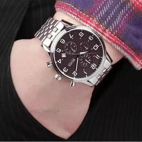 Hugo Boss 1512446 Aeroliner to męski zegarek na stalowej bransolecie z czarną tarczą i kopertą 44 mm. Kontrast jasnej stali z ciemną tarczą nadaje mu bardziej zdecydowany charakter niż w jaśniejszych wariantach tej serii, dlatego model dobrze sprawdza się zarówno w codziennych stylizacjach, jak i przy bardziej uporządkowanym ubiorze. To propozycja dla osób, które szukają męskiego zegarka Hugo Boss o sportowo-eleganckim wyglądzie.