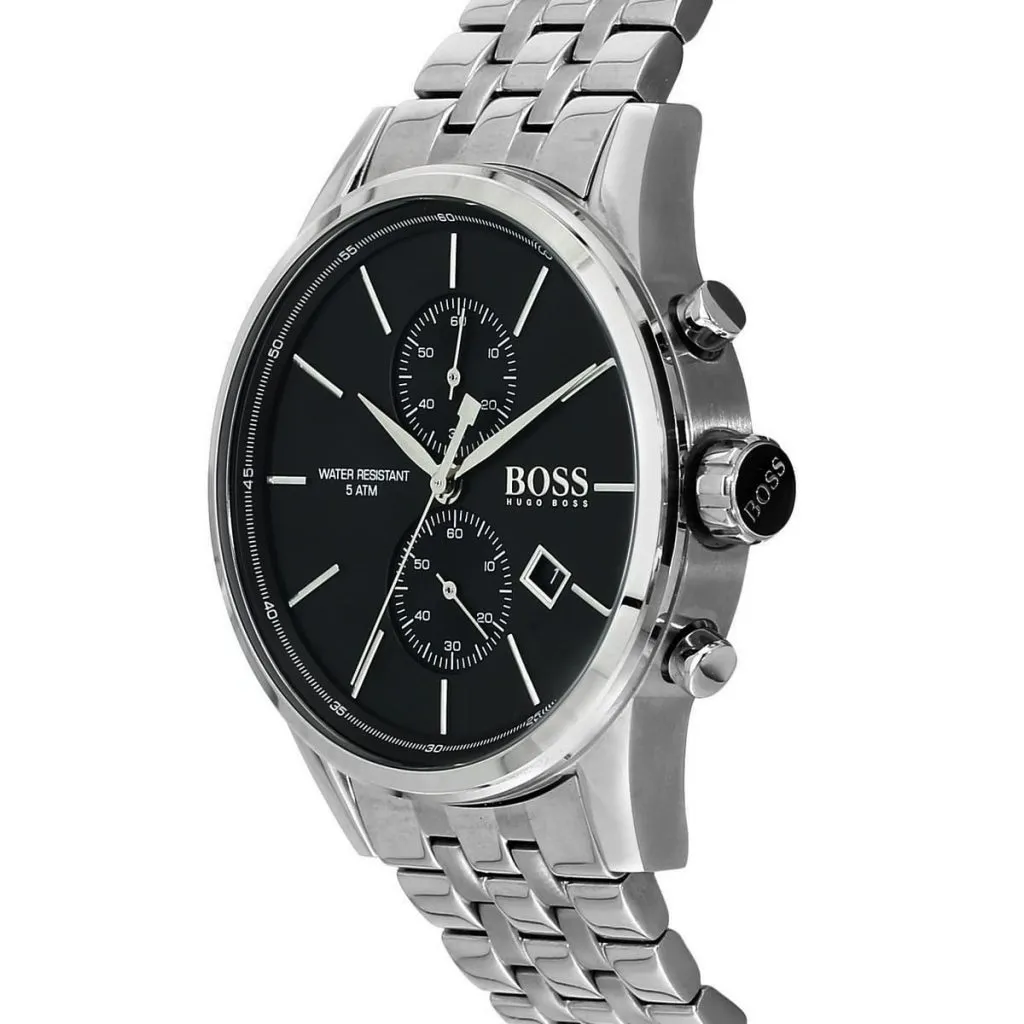 Hugo Boss 1513383 Jet to męski zegarek na srebrnej stalowej bransolecie z czarną tarczą i kopertą 41 mm. Kontrast jasnej stali z ciemną tarczą nadaje mu bardziej zdecydowany charakter niż warianty z jaśniejszą kolorystyką, ale model nadal zachowuje elegancki, uporządkowany wygląd. To dobra propozycja dla osób, które szukają męskiego zegarka Hugo Boss o bardziej uniwersalnych proporcjach.