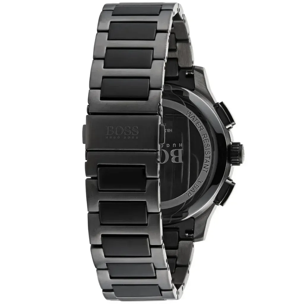 Hugo Boss 1513814 Skymaster to męski zegarek na grafitowo-czarnej bransolecie z kopertą 44 mm i czarną tarczą. Ciemniejsza kolorystyka nadaje mu nowoczesny, bardziej techniczny wygląd niż klasyczne warianty w stali.