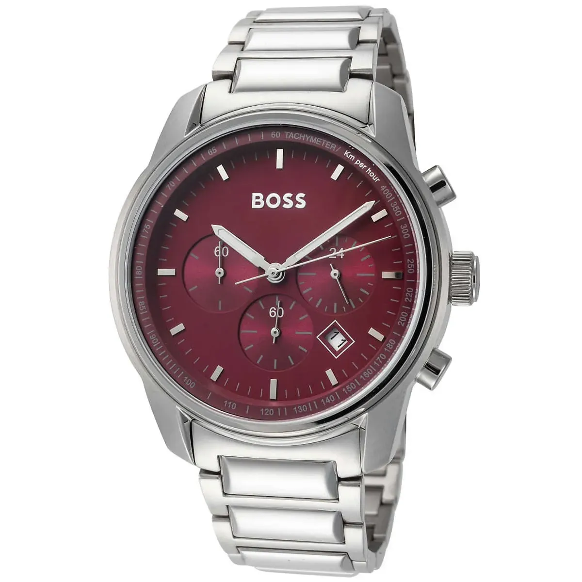 Hugo Boss 1514004 Trace to męski zegarek na stalowej bransolecie z kopertą 44 mm i czerwoną tarczą. Ten wariant wyraźnie przyciąga uwagę mocniej niż spokojniejsze modele w standardowych kolorach, dlatego dobrze sprawdza się u osób, które chcą, by zegarek był bardziej charakterystycznym elementem całej stylizacji.