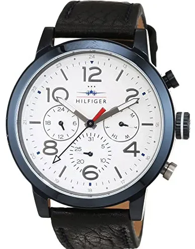 Model wyposażono w mechanizm kwarcowy, szkło mineralne oraz wodoszczelność 5 ATM. Funkcje takie jak dzień tygodnia, dzień miesiąca i wskazanie 24h zwiększają praktyczność w codziennym użytkowaniu. To dobra propozycja dla osób, które szukają zegarka Tommy Hilfiger na skórzanym pasku, z tarczą w kolorze białym i kopertą 46 mm.