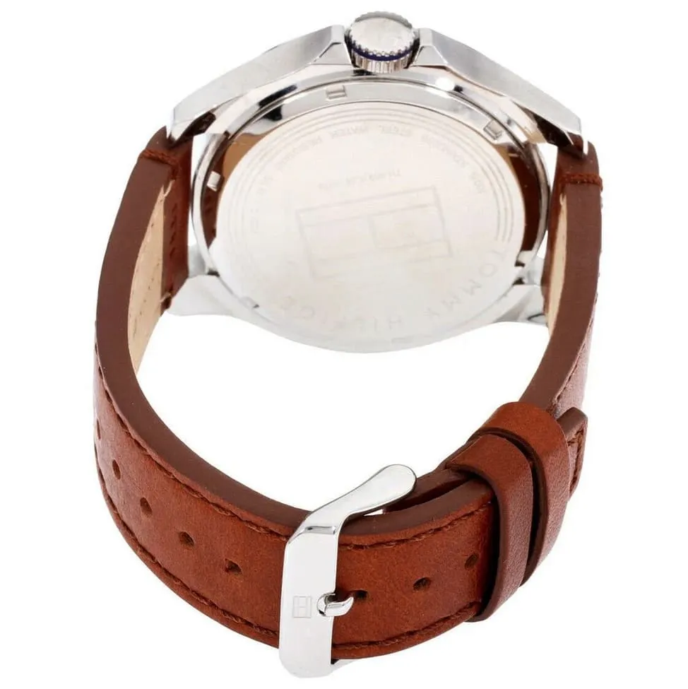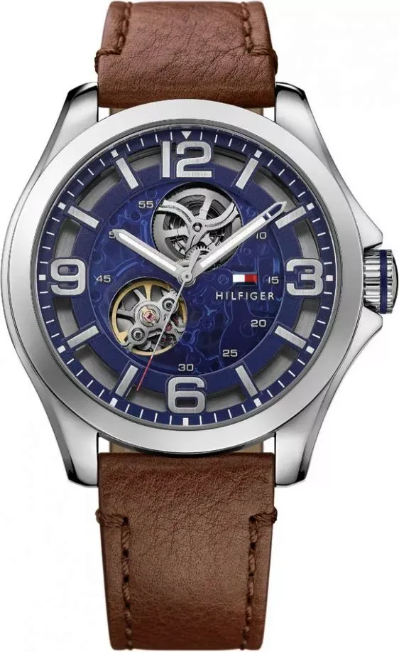 Tommy Hilfiger 1791278 Bruce to męski zegarek automatyczny utrzymany w eleganckiej kolorystyce granatu i brązu. Granatowa tarcza typu open-heart pozwala częściowo obserwować pracę mechanizmu, a zestawienie jej z brązowym paskiem ze skóry naturalnej buduje bardziej klasyczny charakter modelu.