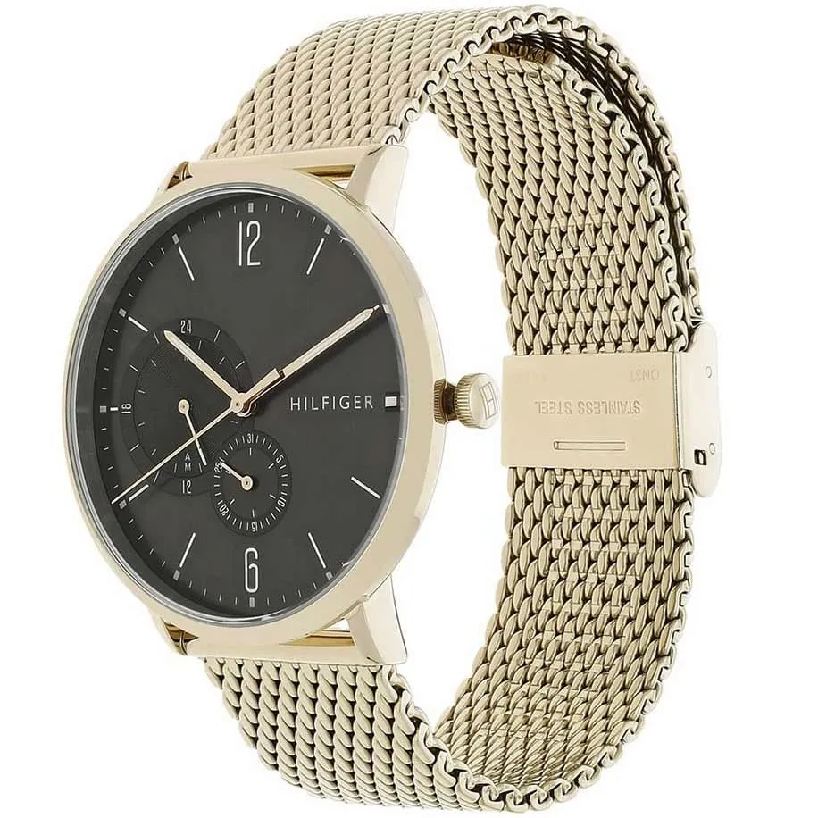 Tommy Hilfiger 1791506 Brooklyn to męski zegarek utrzymany w eleganckiej, nowoczesnej stylistyce. Czarna tarcza została połączona z bransoletą mesh i kopertą w kolorze różowego złota, dzięki czemu model prezentuje się bardzo stylowo i wyróżnia się na nadgarstku.