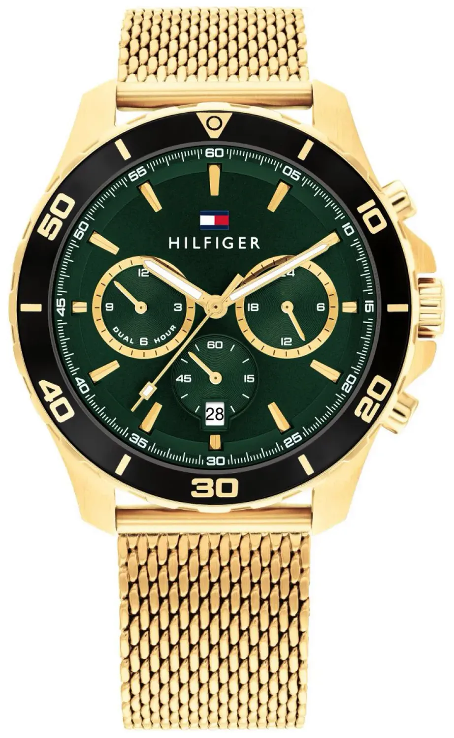 Zegarek działa na mechanizmie kwarcowym i został wyposażony w szkło mineralne oraz wodoszczelność 5 ATM. Datownik, druga strefa czasowa i wskazanie 24-godzinne zwiększają jego funkcjonalność w codziennym użytkowaniu. To dobry wybór dla osób, które szukają męskiego zegarka Tommy Hilfiger na bransolecie mesh, z zieloną tarczą i eleganckim złotym wykończeniem.